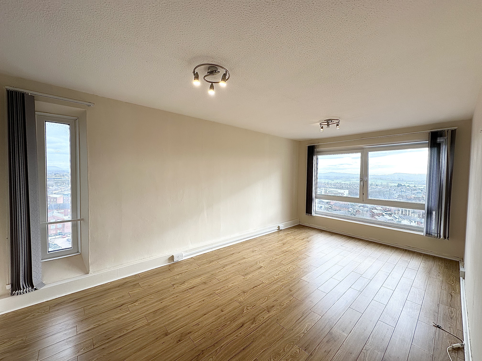 As soon as you enter this property, you will be struck by the amount of space it offers. It consists of an entrance hallway, lounge, kitchen, two bedrooms, bathroom, separate WC and an extra room off the lounge which is a great storage area. The lounge is a brilliant size and is so light having a large window letting in natural light and providing an amazing view stretching for miles. The kitchen leads off the lounge and provides everything necessary and the two bedrooms are both light and spacious doubles. To finish off the apartment internally there is a modern bathroom with a walk-in shower and a separate WC.