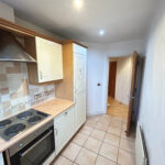 Next to this room you have the main bathroom. With bathtub and over head shower. From here you follow the corridor round to the large lounge area that is flooded with light coming from the bay window. Next to the lounge is the kitchen. With integrated fridge, freezer, hob and oven you have plenty of space to proper meals.