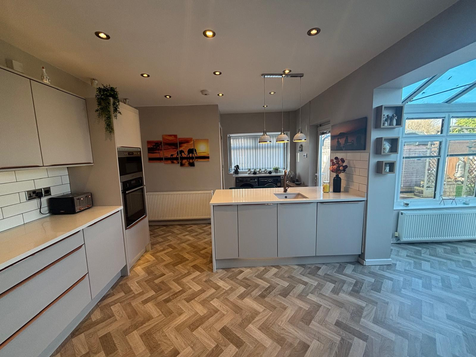 The ground floor features a stunning extended kitchen and dining area that forms the heart of the home, providing a bright and contemporary space perfect for both everyday living and entertaining. This area flows seamlessly through to a generous conservatory space, creating an open and versatile layout with views over the impressive rear garden.