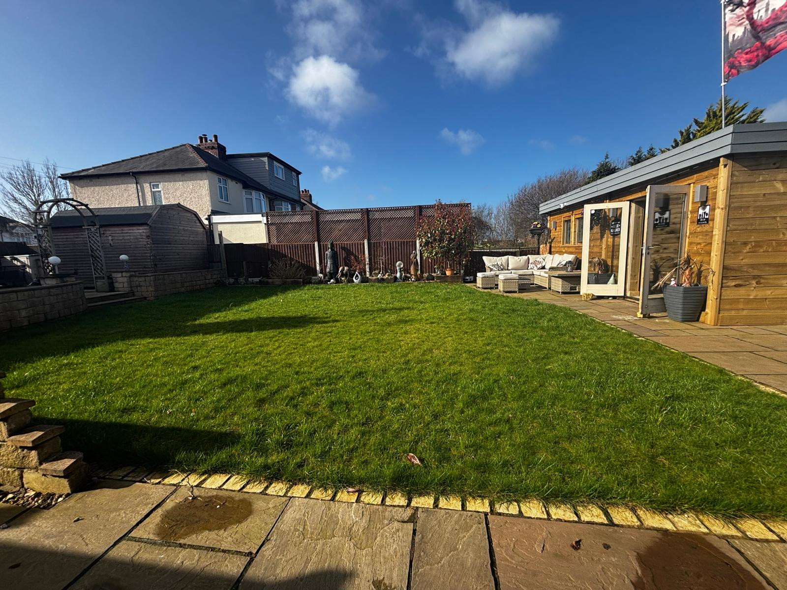 Externally, the property continues to impress. To the front is a large driveway providing off-road parking for up to three vehicles. The substantial rear garden offers an exceptional outdoor space and includes a double shed, summer house, and a fantastic converted garden bar, perfect for entertaining and enjoying the warmer months.
