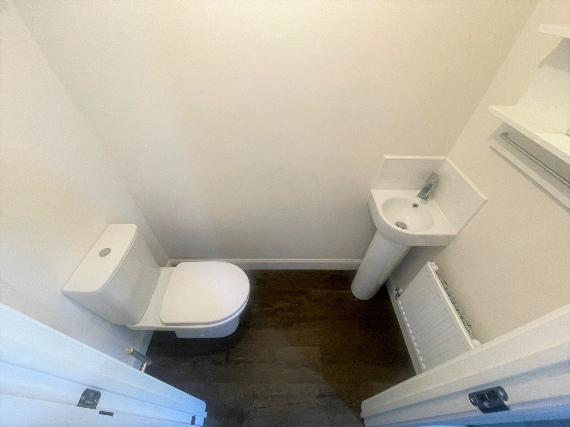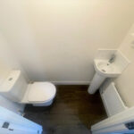 Ceiling light point, painted walls, w/c, corner washing hand basin and laminate flooring.