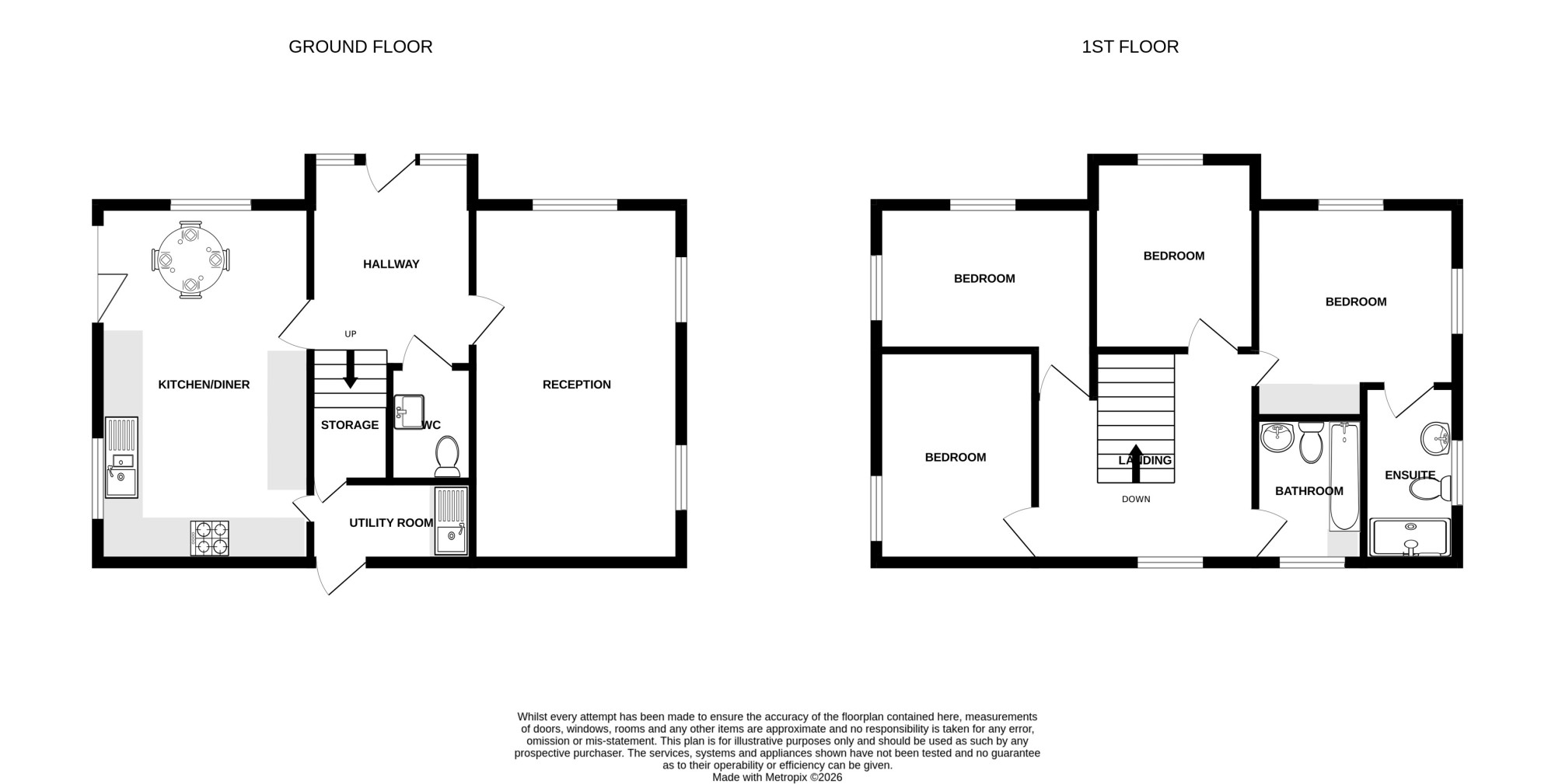 Upstairs, the property offers four well-proportioned bedrooms, including three doubles and a good-sized single bedroom that would work well as a nursery, child’s room or home office. The family bathroom includes a bath with shower over, WC and wash basin. The main bedroom further benefits from its own ensuite shower room.