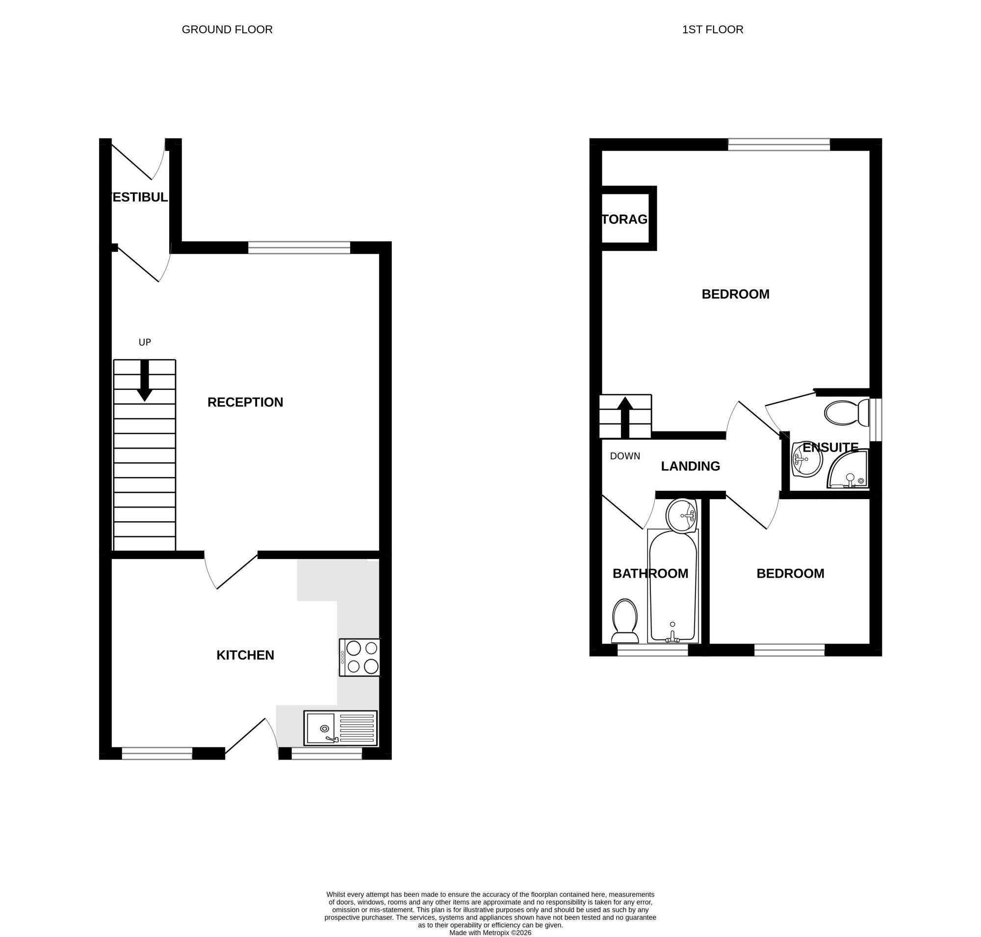 On the first floor as you reach the top of the stairs you are greeted by the family bathroom. The property has 2 bedrooms. The master bedroom is situated at the front of the property and has its very own en-suite shower room and toilet. It also has a very large storage cupboard perfect for a closet. The second bedroom at the rear of the property is a good size room perfect for a child's room or a guest bedroom.