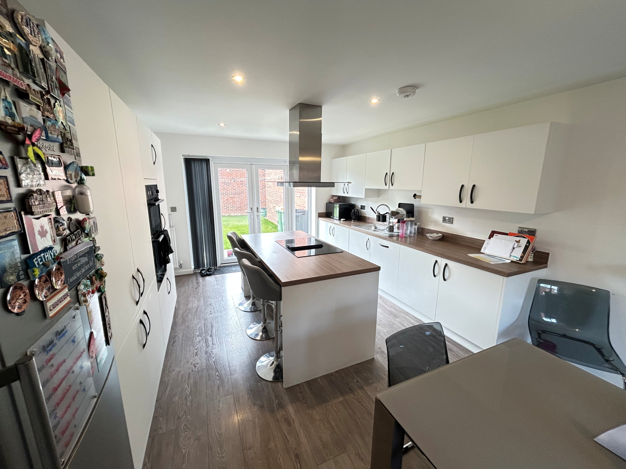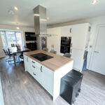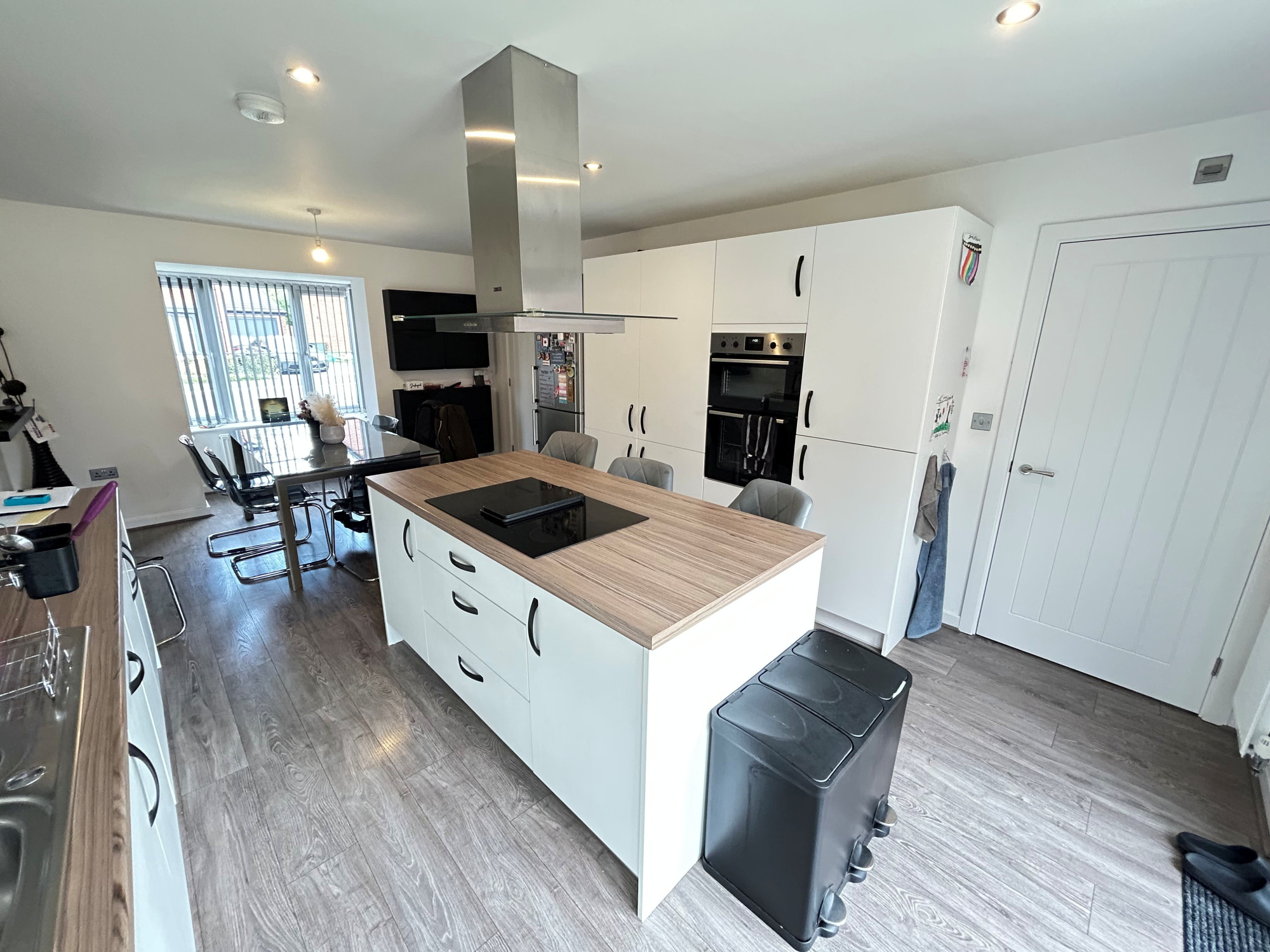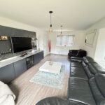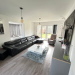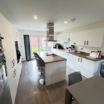 To the right of the property you will find the kitchen and dining area. A large space with plenty of light from the bay window at the front and the double doors at the back leading to the garden. The kitchen is a perfect space for hosting and entertaining. With the hob being situated in the middle of the kitchen in the island you can have people seated around whilst you are cooking or take advantage of the dining area perfect for family meals or having guests around. Off the kitchen you have a laundry room with space for your washer, dryer and dishwasher.