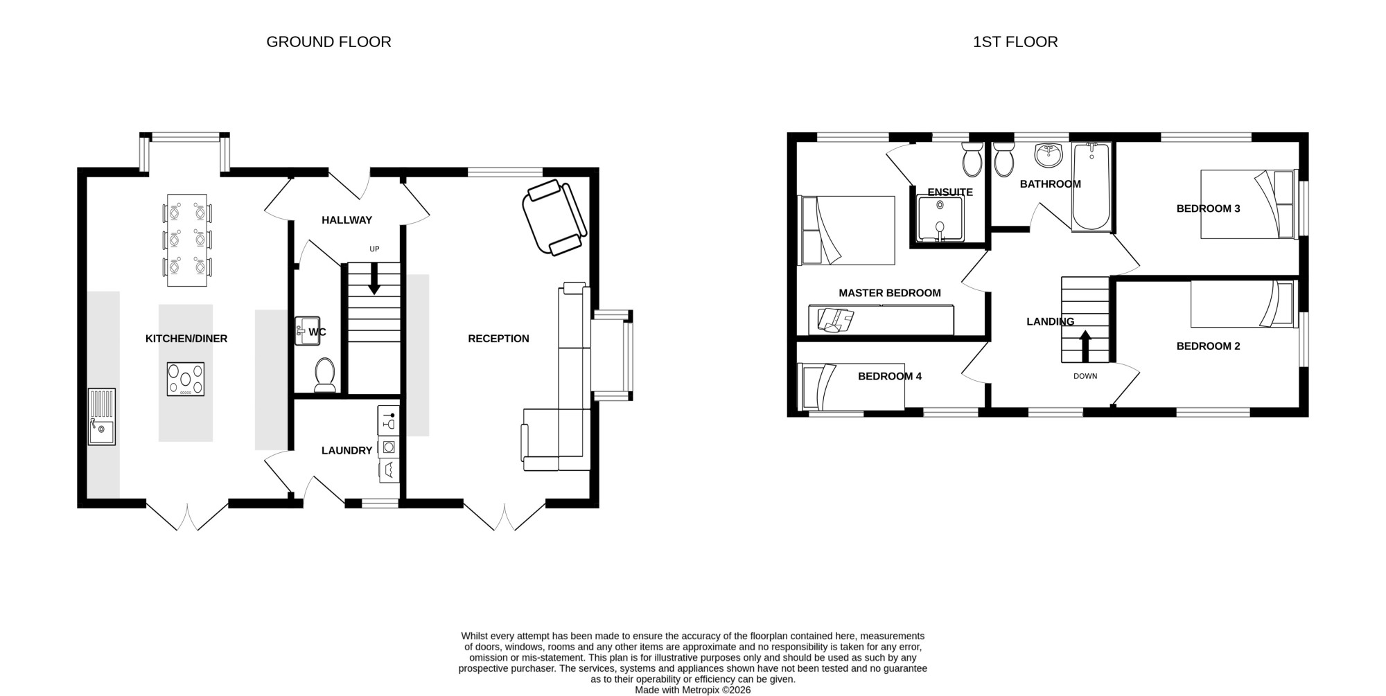 Now to the upstairs. With a very large landing space you have all 4 bedrooms and the family bathroom on this floor. All 4 bedrooms have plenty of space for children or adults. The master bedroom has its own en-suite housing a shower. The family bathroom is a very good size with a bath and over head shower.