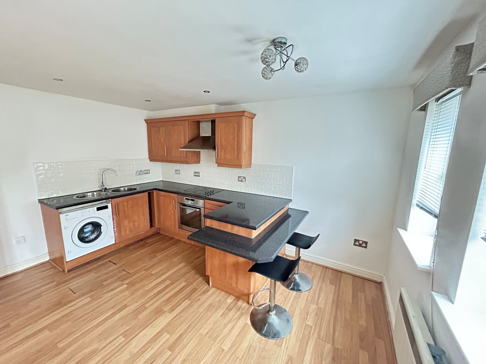 Designed for modern living, the property offers a generous open-plan lounge and contemporary fitted kitchen with integrated appliances. Two well-sized bedrooms provide comfortable accommodation, with the second room offering flexibility for a home office or guest room.
