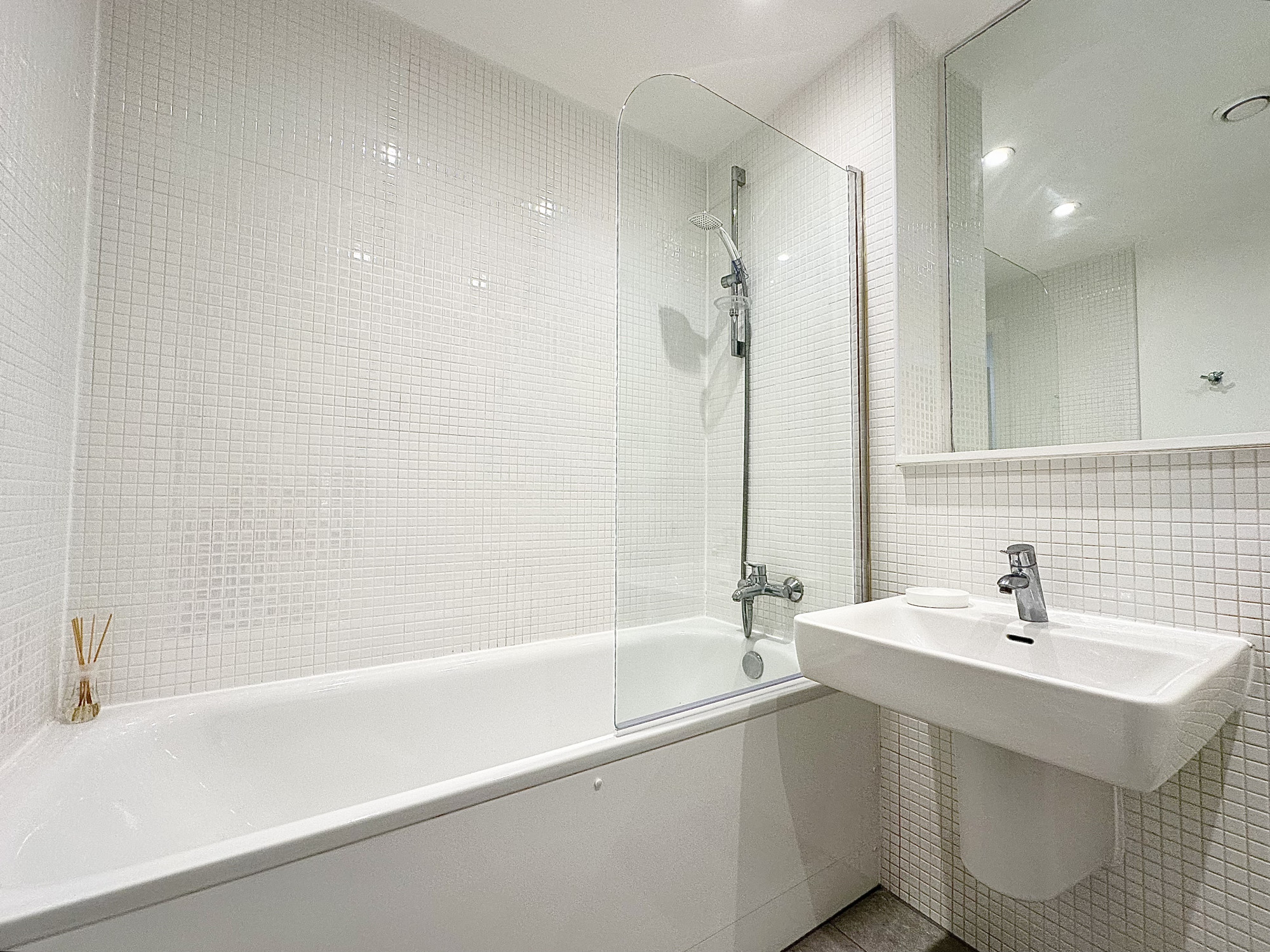 Internally the apartment consists of a lounge / kitchen, two bedrooms, en-suite and a bathroom. The lounge / kitchen is an excellent size and is so light with double doors leading to the balcony which let in so much natural light. The kitchen comes with built-in appliances including a cooker, fridge / freezer and a washing machine. Both of the bedrooms are light and spacious doubles and the main bedroom has the added benefit of an en-suite. The bathroom is fresh and modern with a bath with a shower over.