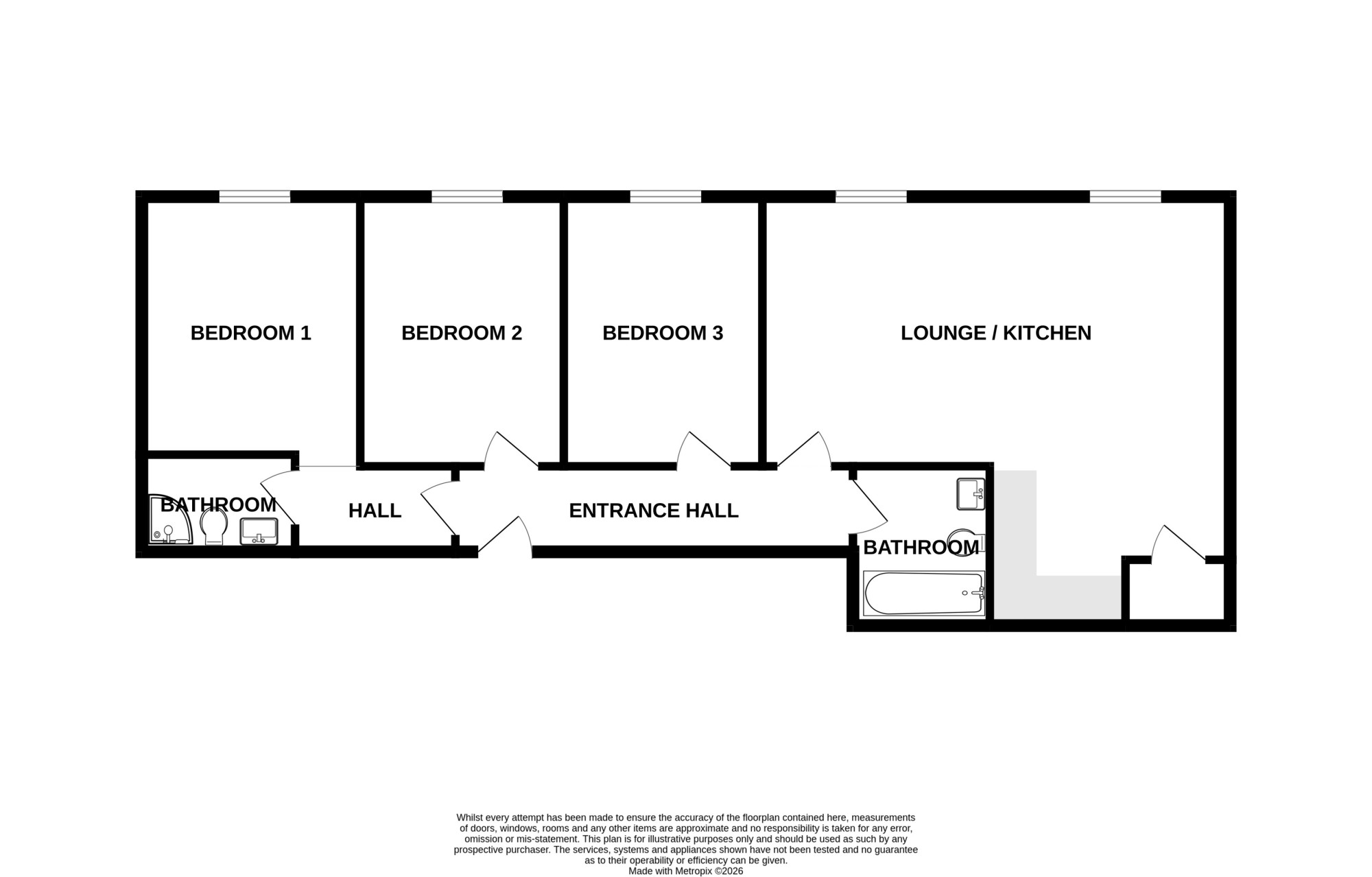 This modern, light and spacious apartment is situated in the Sorting Office which is a beautiful building which has been converted very sympathetically into apartments. It has clean and spacious corridors and is a lovely building to live in. The apartment itself is so incredibly spacious and you will realise that as soon as you enter and see the great size hallway. Leading off the hallway there are multiple rooms including a lounge / kitchen, three bedrooms and a bathroom. The lounge / kitchen is a great size with two double glazed windows allowing so much natural light to flood in. The kitchen is modern and the room provides the perfect living / cooking / entertaining area. All of the bedrooms are good size doubles and one of the bedrooms benefits from an en-suite with a walk-in shower. The main bathroom located at the end of the entrance hallway has a bath with a shower over and is a generous size.