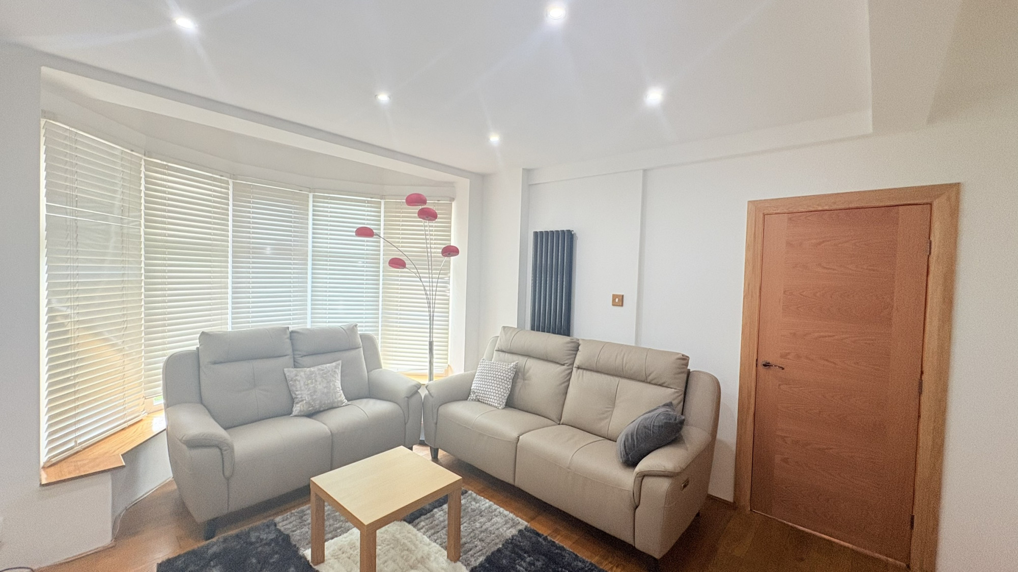 Step inside to discover an expansive and beautifully appointed interior. The welcoming entrance hallway flows effortlessly into a bright and spacious lounge/dining area, where large bay windows and contemporary ceilings enhance the feeling of openness. Flooded with natural light, this versatile space is perfect for both relaxed family evenings and formal entertaining.