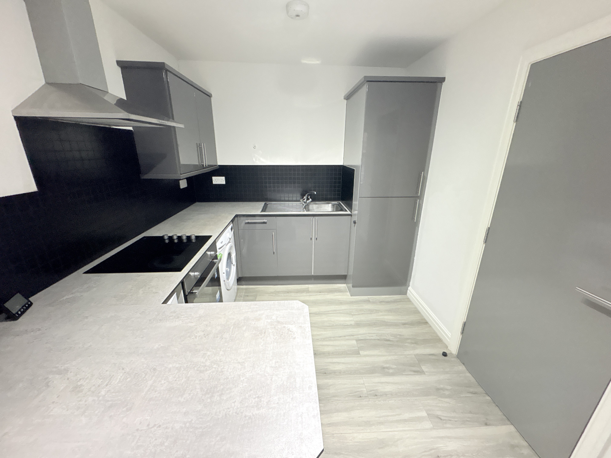 The apartment is newly renovated to a high standard and situated on the ground floor. The internal aspect of the accommodation boasts modern open plan spacious lounge with wooden floors, spot lights, double glazing windows and fitted kitchen with built in oven, hob and extractor, washer and fridge freezer.
