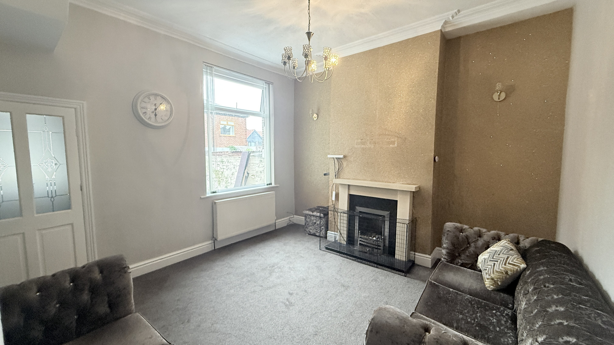 The house comprises of a small porch leading into a hallway with access to a spacious living room with fitted carpet, double glazed window, radiator and beautiful feature fireplace.