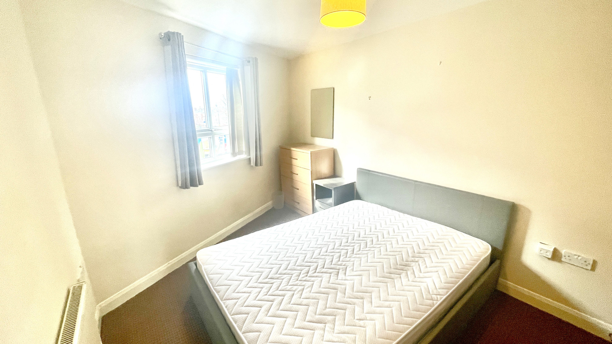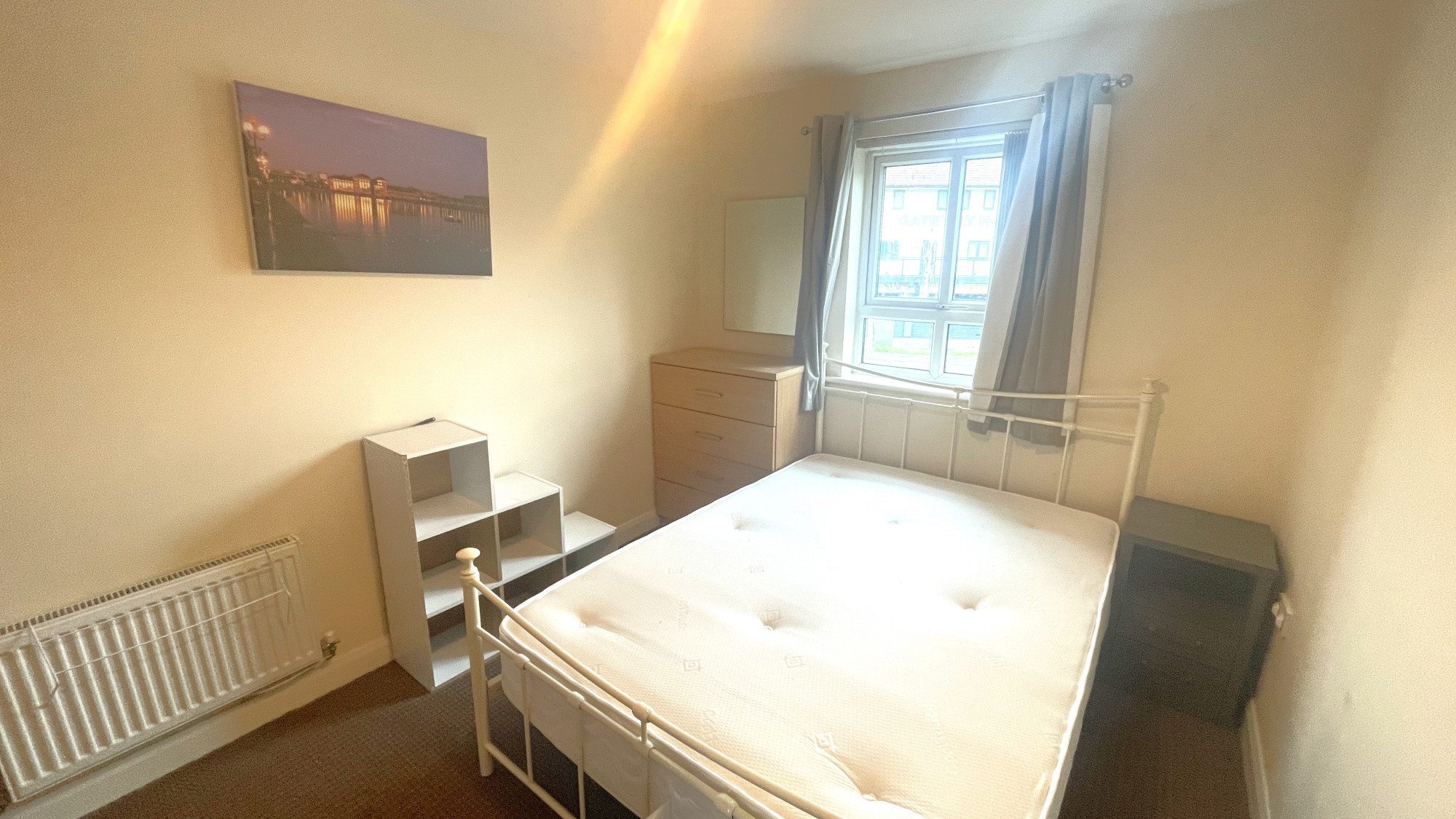 Painted walls, Carpeted flooring, Double glazed window, Double power socket, curtains and blinds, Central ceiling light, Bedside table, Chest of drawers, Wall mounted radiator