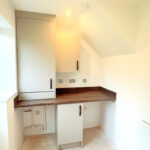 The utility room has worktops and space for washing machine, dryer and houses the boiler.