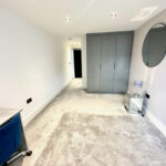 Double bedroom, luxury carpet, double glazed soundproof windows, electric heating, various power points sockets, black chrome finished switches and modern lighting.