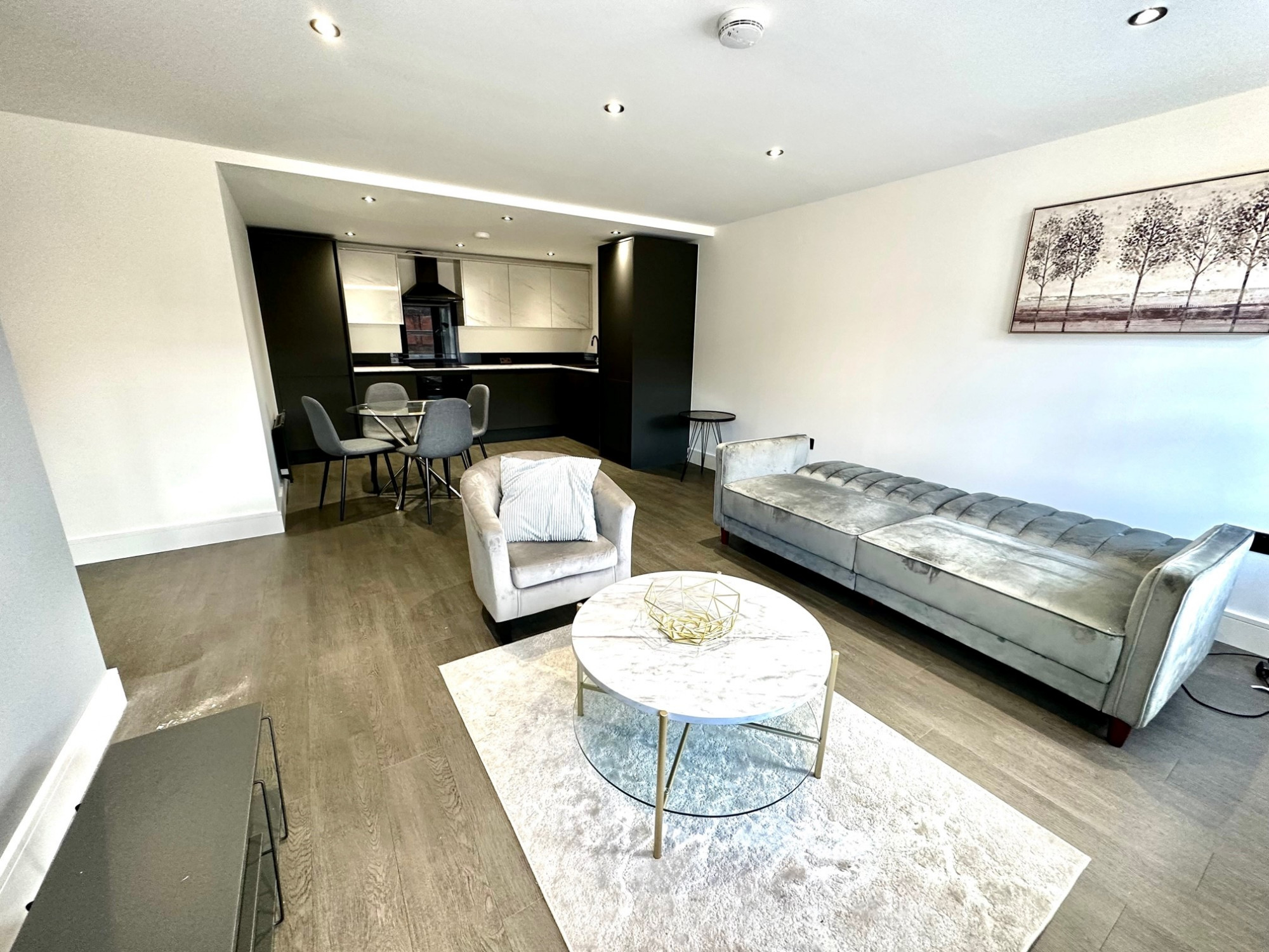 Fully integrated Italian kitchen with fridge/freezer, washer/dryer, oven, hob/extractor, mirrored splashback and Led lighting, dining area and lounge with herringbone LVT floor, Led lighting, black chrome finished switches and spotlights, various power points sockets, and Satellite tv points. Plenty of natural light with great views across the city on the higher floors.