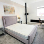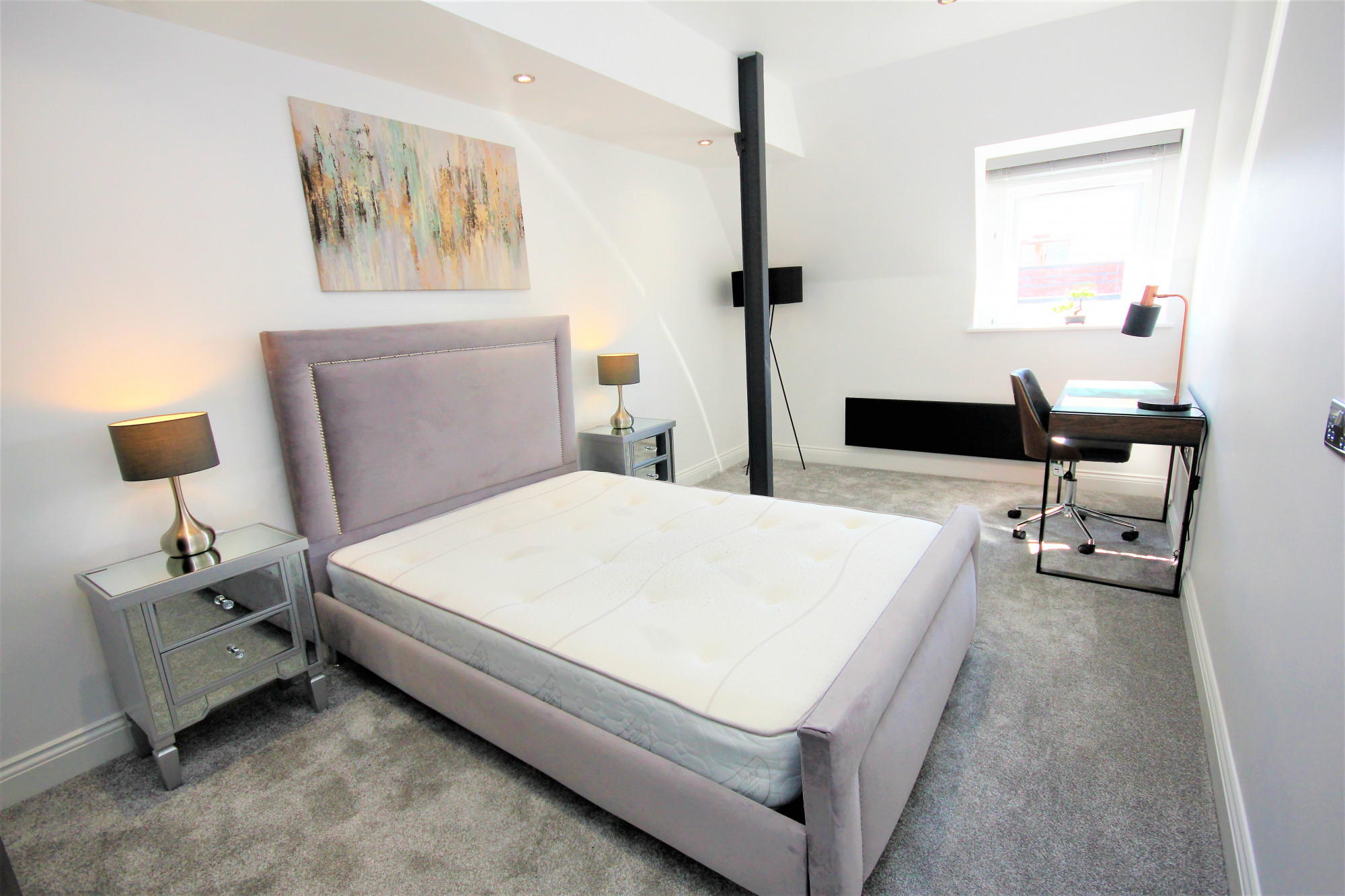 Double bedroom, luxury carpet, exposed steel beams, double glazed window, electric heating, various power points sockets, chrome finished switches and modern lighting.
