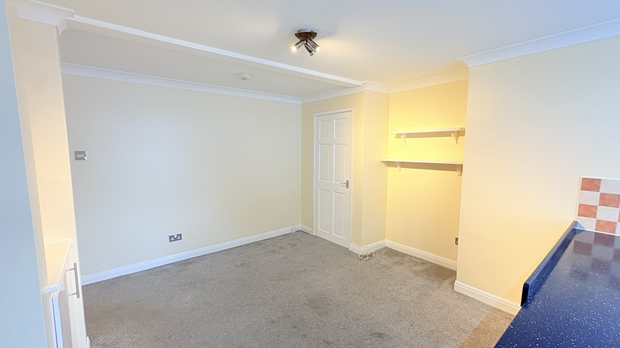 The property features a bright living room with fitted carpets, providing a comfortable and welcoming space. The bedroom is also carpeted with a central ceiling light point.