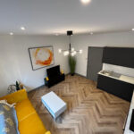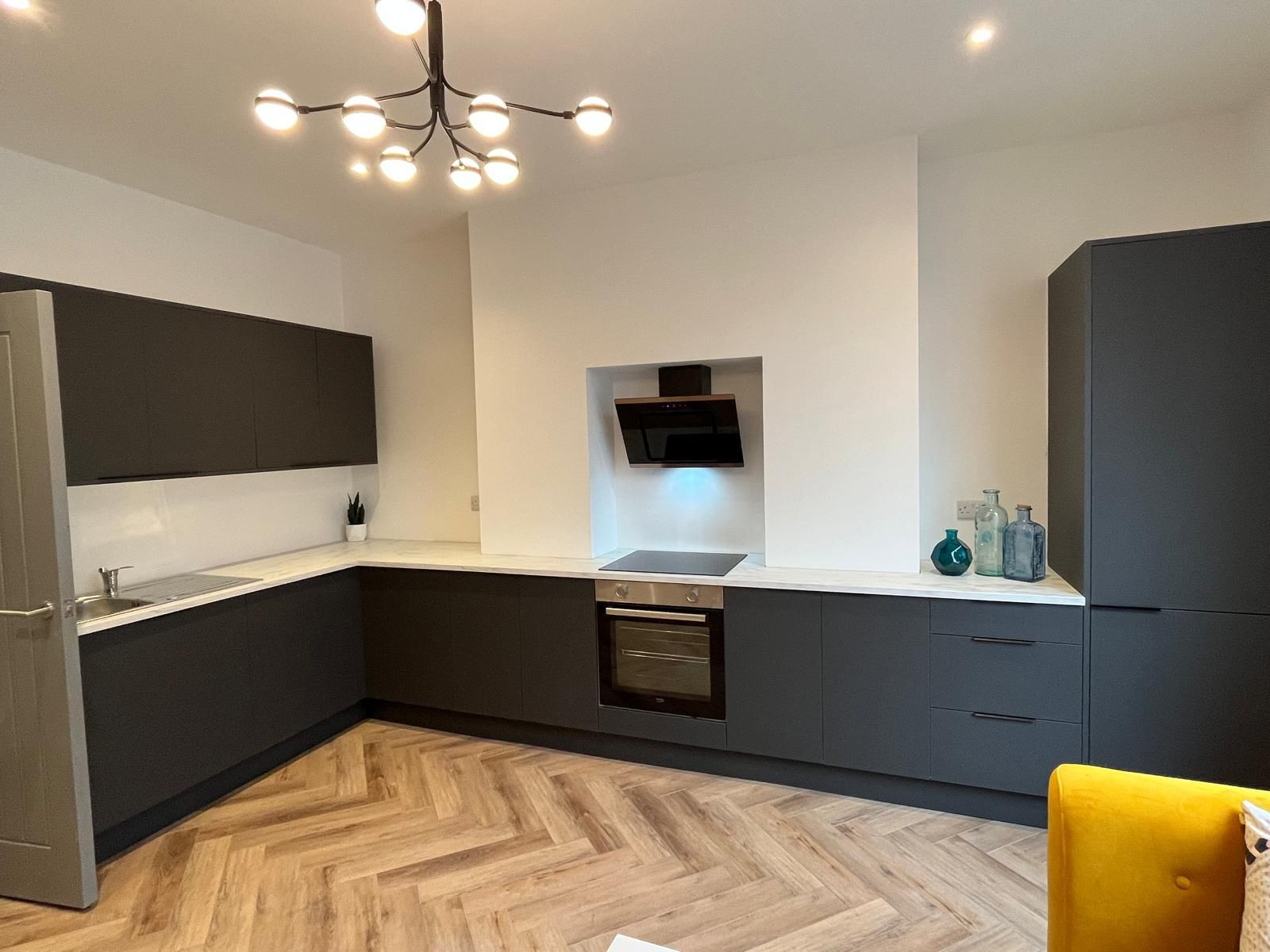 Complete and fully fitted Sleek and functional kitchens, open plan with large dining table. All integrated appliances including cookers, hob & extractor and fridge freezer and integrated Washer/dryer.