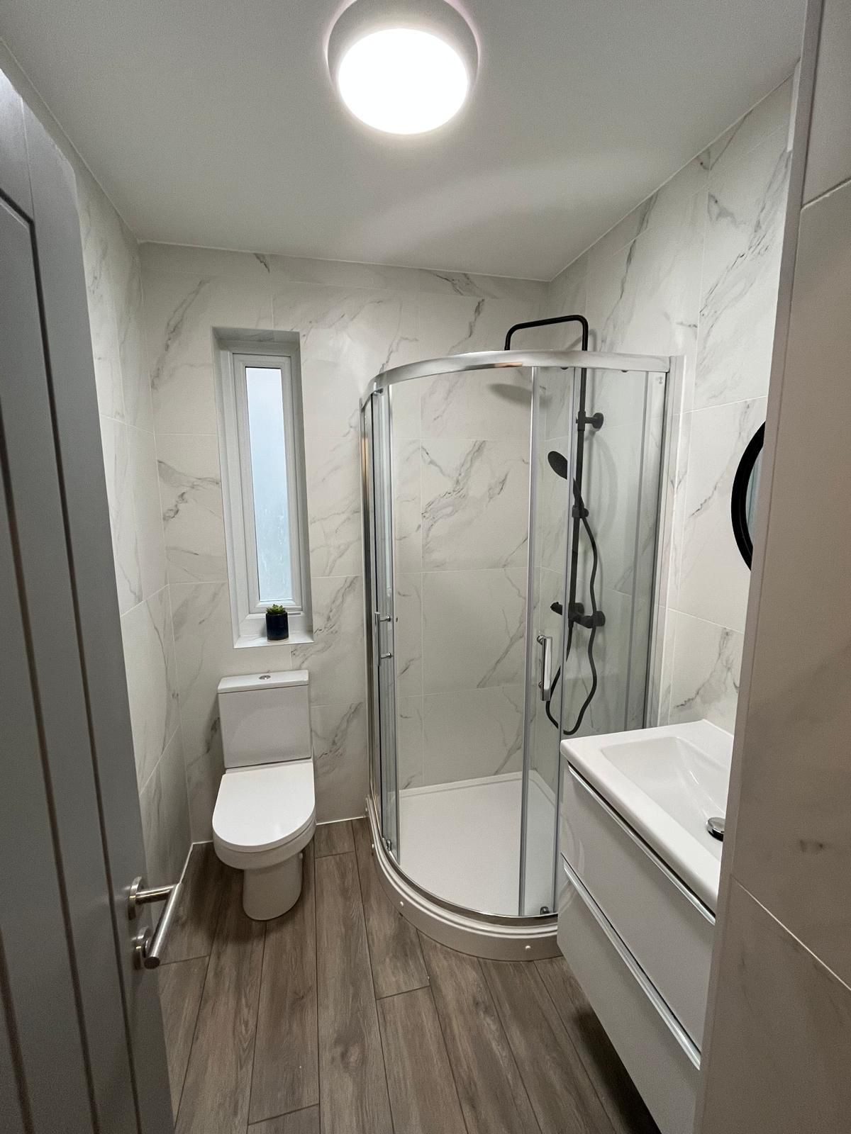 walk in power showers, hand picked Italian suits and tiles including electric heated towel rails.