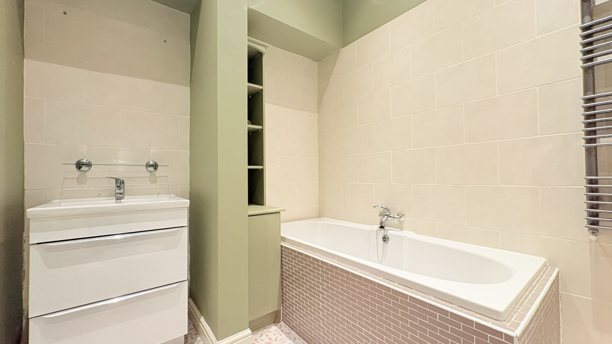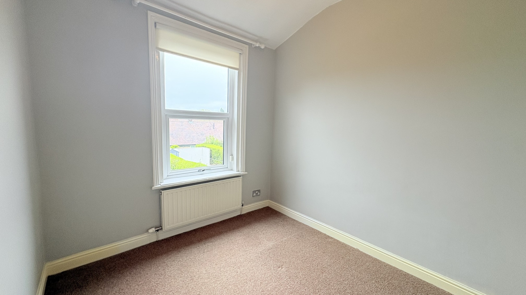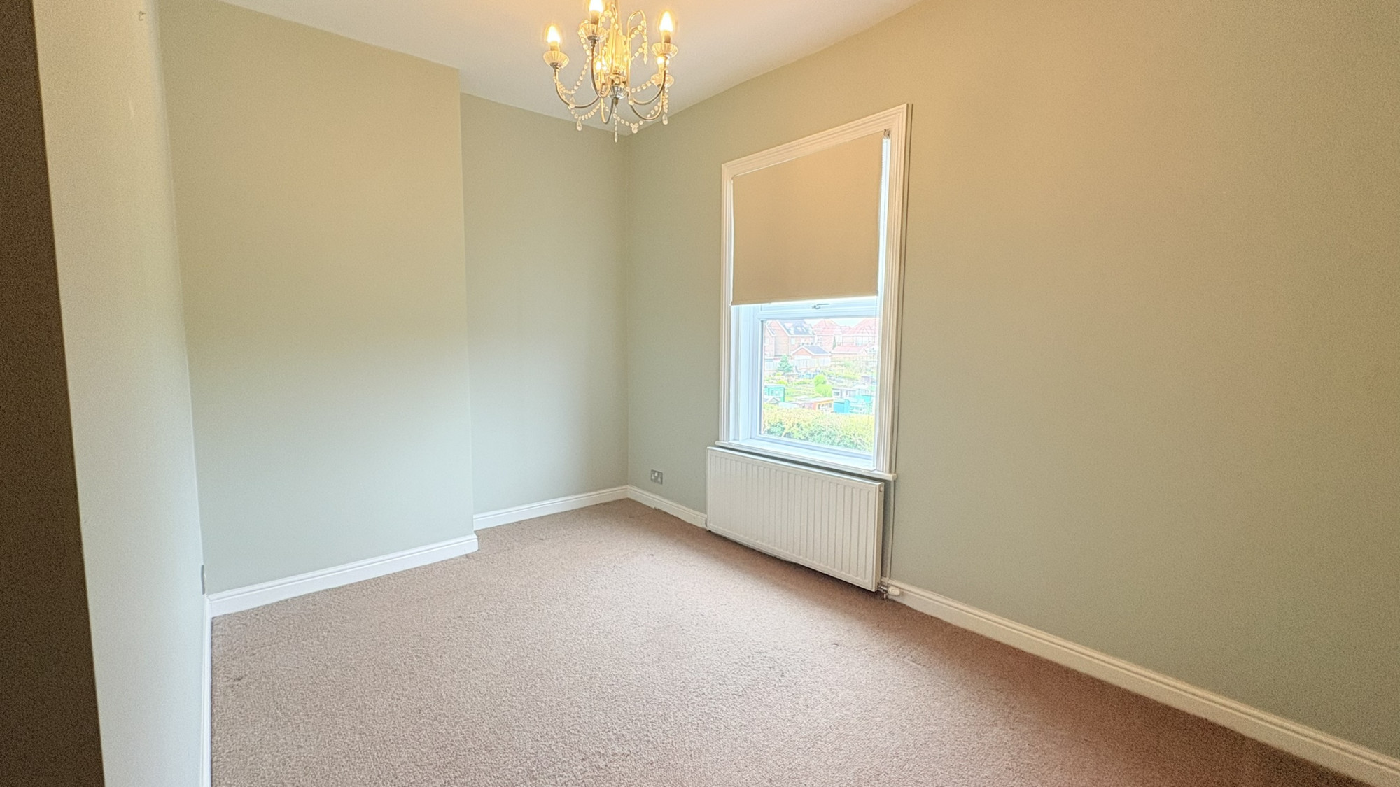 The property features three generously sized bedrooms, each fully carpeted and benefiting from central lighting and wall-mounted radiators, creating a warm and inviting atmosphere throughout.