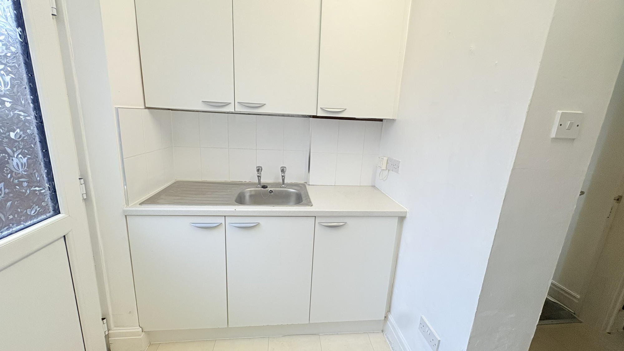The kitchen is spacious and features tiled flooring, providing plenty of room for everyday cooking and use.