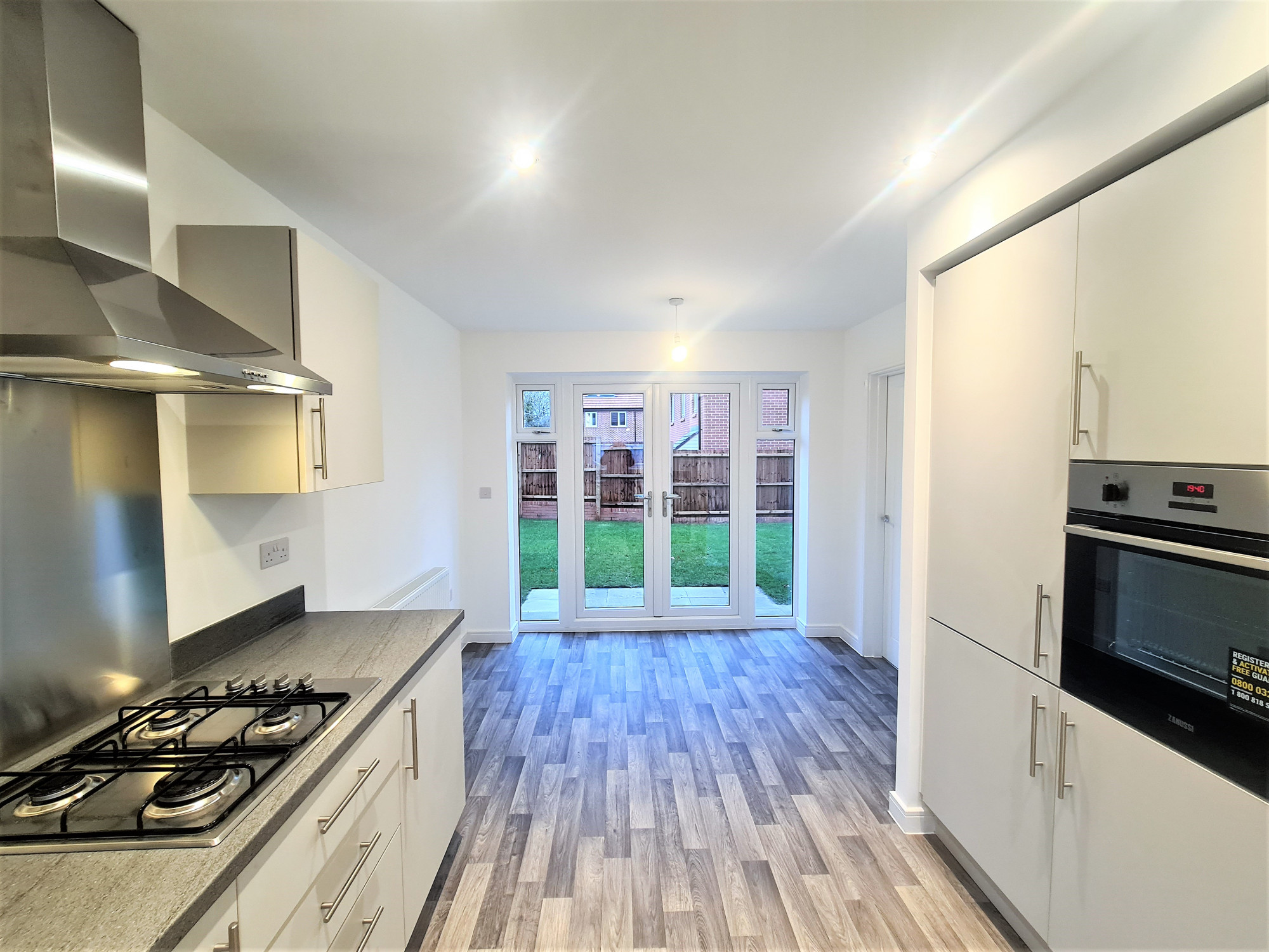 The Kitchen/Diner, like the lounge, extends the entire length of the property and has French doors to the rear. It features modern units, plenty of storage and some integrated appliances. Just of the rear of the room there is a dedicated laundry/utility room with additional storage and space for a washing machine.