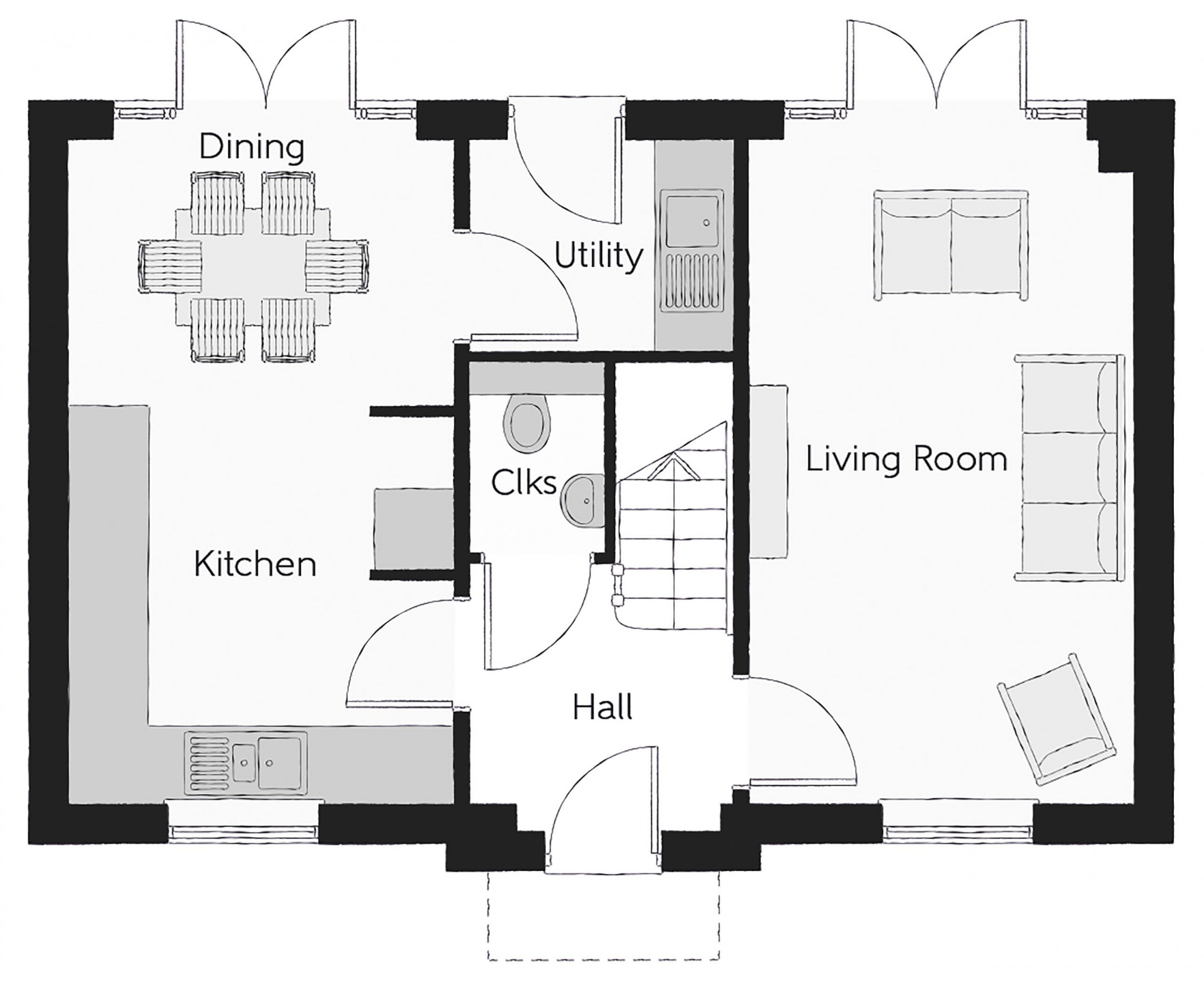 The ground floor hosts the lounge, kitchen/diner and a W/C.