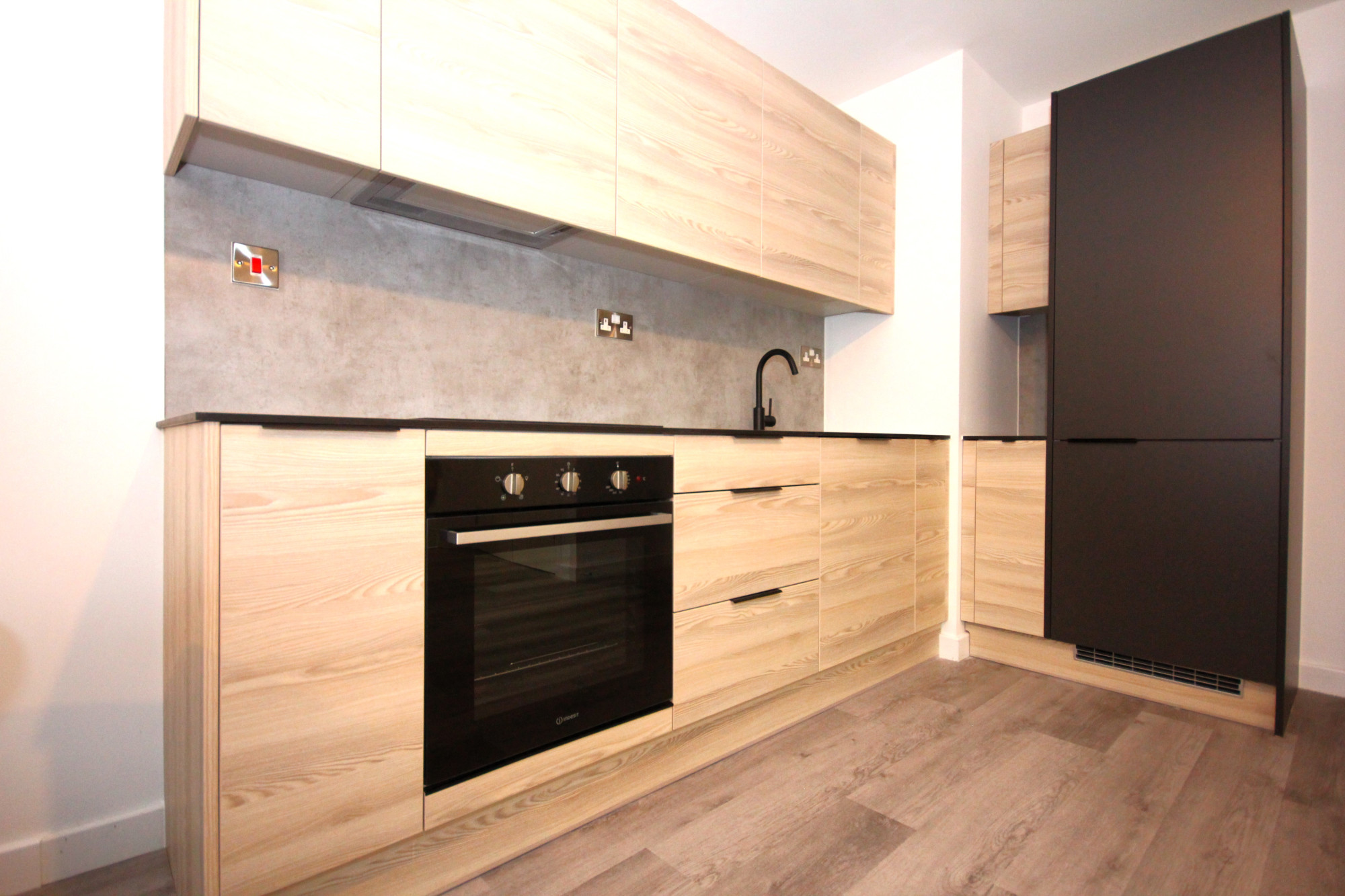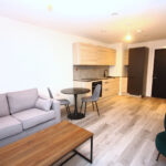 Step into a world of comfort and style with this luxury apartment block. You are invited with a spacious open plan lounge and kitchen which has laminated flooring throughout and consists of a double seated sofa, coffee table and television stand. In the kitchen area this comprises of wall and base units finished with wooden effect and integrated fridge/freezer, electrical hob and oven. The apartment allows plenty of natural light with the huge windows in the apartment.