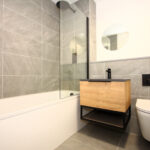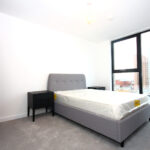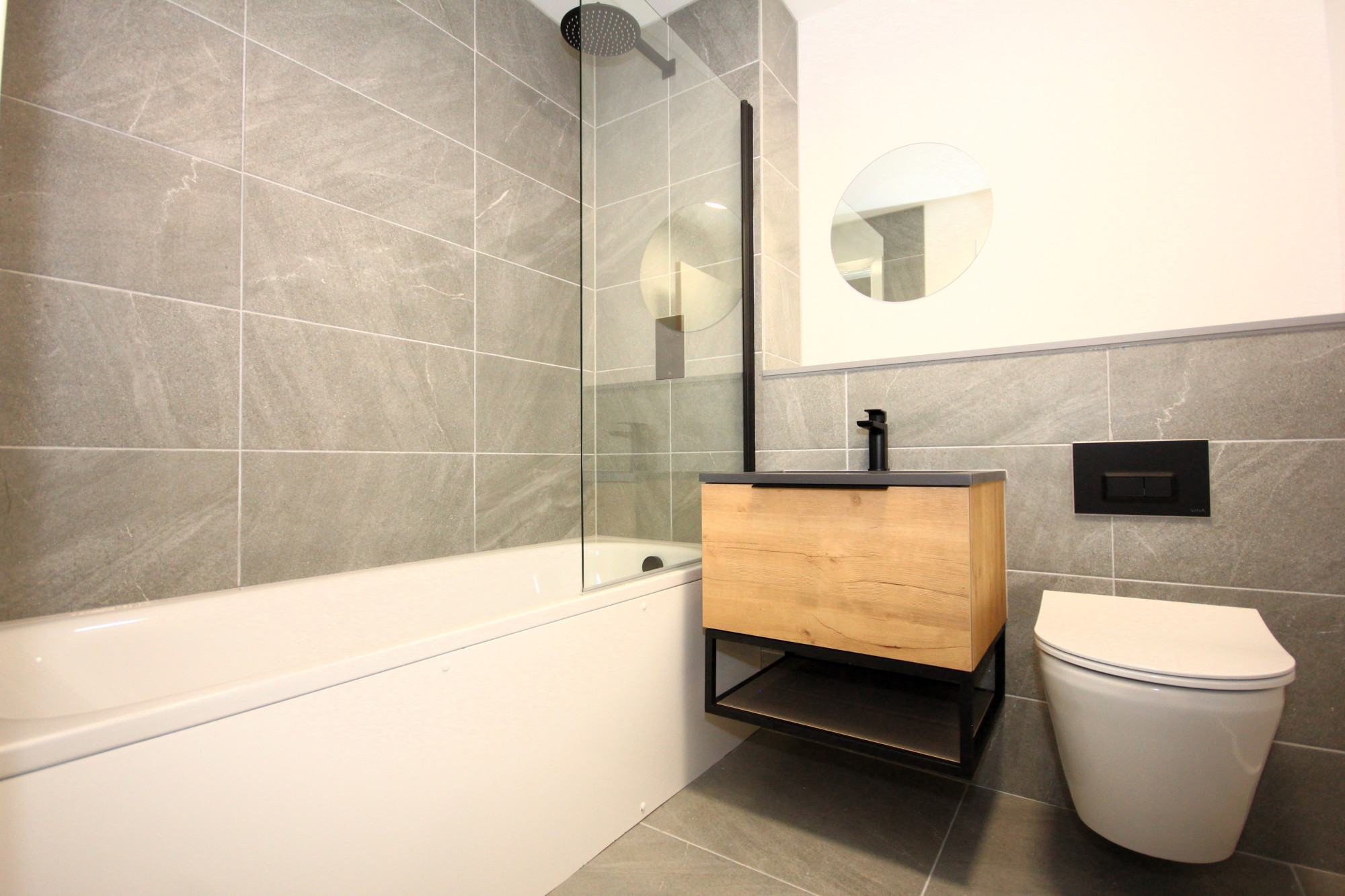 The bedroom consists of a double bed, bedside cabinets, luxury wooden wardrobe and chest of drawers. Also with the big windows in the bedroom this allows plenty of natural light to come through. To complete the apartment the modern three-piece bathroom suite comprises of a floating W/C, sink basin and bath tub with an overhead shower which is finished to a high standard.