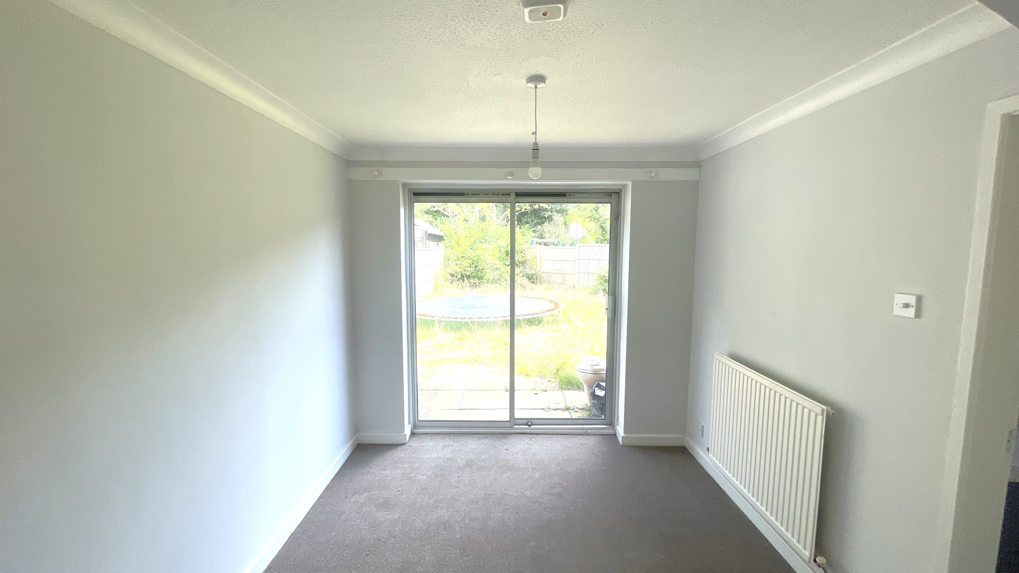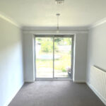 DINING ROOM with fitted carpet, double glazed sliding patio doors providing access to the garden and doorway leading to;
