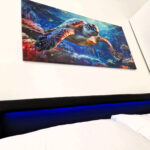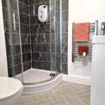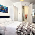 The room is located on the ground floor of the property and has been designed to a very high standard. As the room is of a very large size. The room also comprises of a double bed, bedside cabinet, wardrobe, desk, mirror and TV. This room allows plenty of natural light due to its big windows.